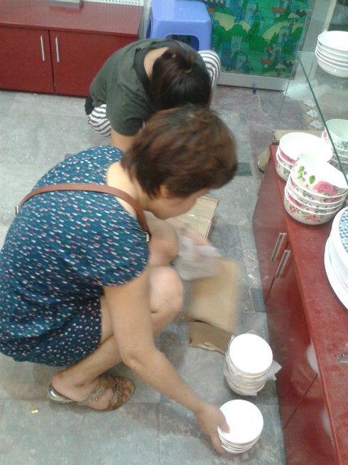 Có mặt tại cửa hàng một giá trên phố Bạch Mai, cô Phan Thị Bích cho biết, đây toàn hàng Trung Quốc ấy mà. Nói thật mua bát thế này chả biết về nó có bong men ra không, có độc không nhưng giá rẻ cũng liều, nhắm mắt mà mua. Cô mua bát về chỉ dùng hôm nào có dịp lễ tết, hay có công, có giỗ thì bày ra thôi.