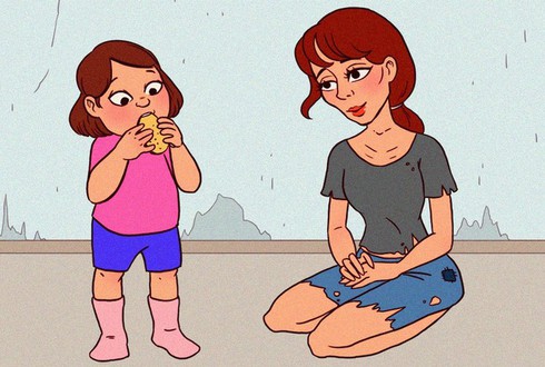 6. Nhịn đói, nhường con:Đây là điều mà phụ huynh, đặc biệt người mẹ, không bao giờ kể với con. Thông thường, khi con muốn ăn, cha mẹ luôn thỏa mãn yêu cầu này. Thậm chí, khi chỉ còn một chút thức ăn đủ cho một người, bà mẹ sẽ nhường cho con và chấp nhận đi ngủ với bụng rỗng. Ảnh:Brightside. |