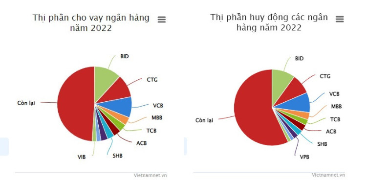10 ngân hàng lớn nhất phân chia thị phần cho vay, huy động ra sao?