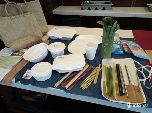 Ảnh minh họa ống hút làm từ cây cỏ bàng và inox, hôp đựng thức ăn làm từ bã mía, những sản phẩm thân thiện với môi trường. |