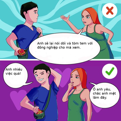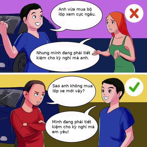 Tại sao bạn phải so sánh, đòi hỏi những điều xa vời với đối tác của mình. Ai cũng có điểm tốt, điểm xấu, nếu đã yêu thì phải biết chấp nhận. Hãy khéo léo cùng họ sửa đổi những khuyết điểm chứ đừng mang một hình tượng hão huyền ra để so sánh và thúc ép nửa kia phải học theo, trở thành cái bóng của người khác.