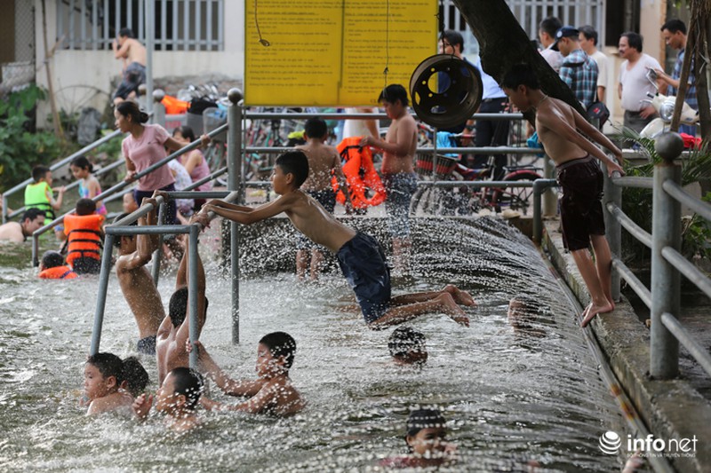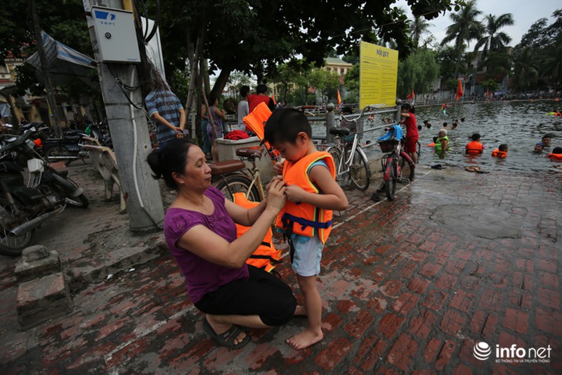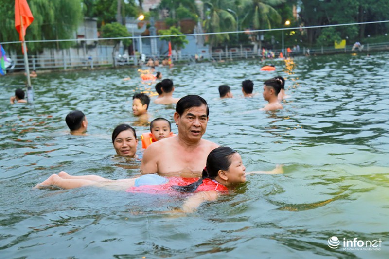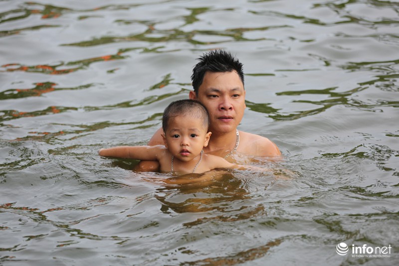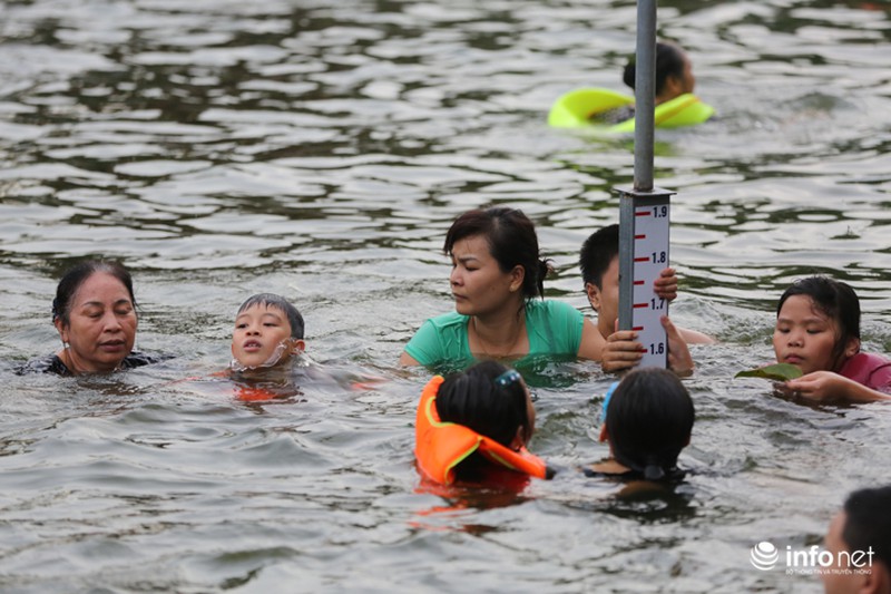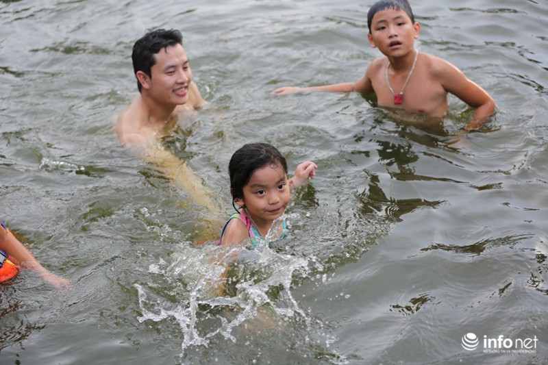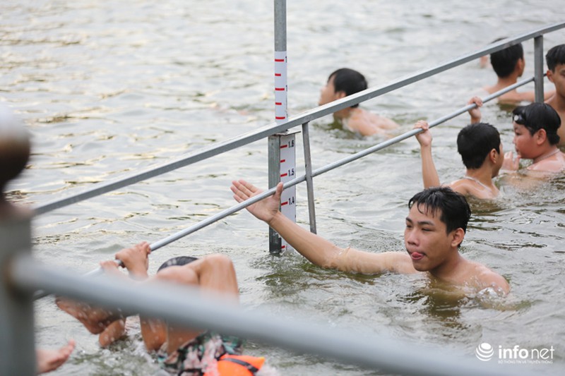 Từ sau khi được cải tạo, "bể bơi" đặc biệt này luôn trong tình trạng đông "khách", theo chia sẻ của ông Hậu, trung bình mỗi ngày có khoảng 300-400 lượt người xuống bơi lội. Nhiều phụ huynh cũng đưa theo con em mình tập bơi từ lúc còn nhỏ. |