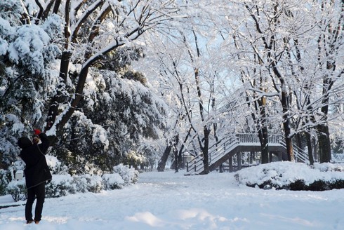 Người dân tranh thủ chụp lại khoảnh khắp đẹp tựa như trong phim "nữ hoàng băng giá" |