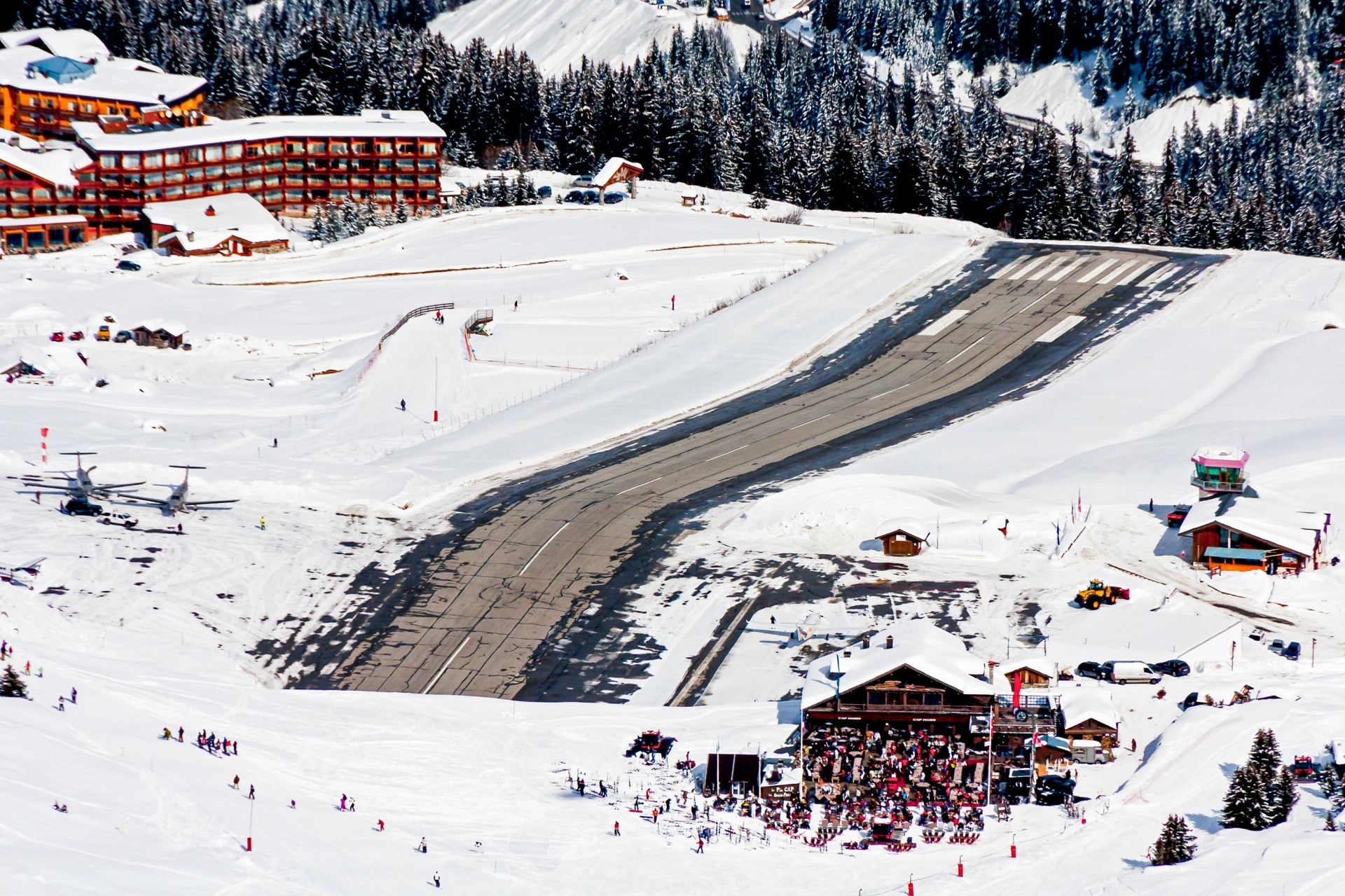 Sân bay là một dải đường băng dài 1.700 feet (518m), nằm ở độ cao 6.000 feet (1,8km) so với mực nước biển trên một con dốc ở dãy núi Alps của Pháp, là sân bay duy nhất ở thị trấn trượt tuyết Courchevel, nó là một trong những đường băng ngắn nhất trên thế giới, với độ dốc 18,5% để giúp máy bay hạ cánh chậm.