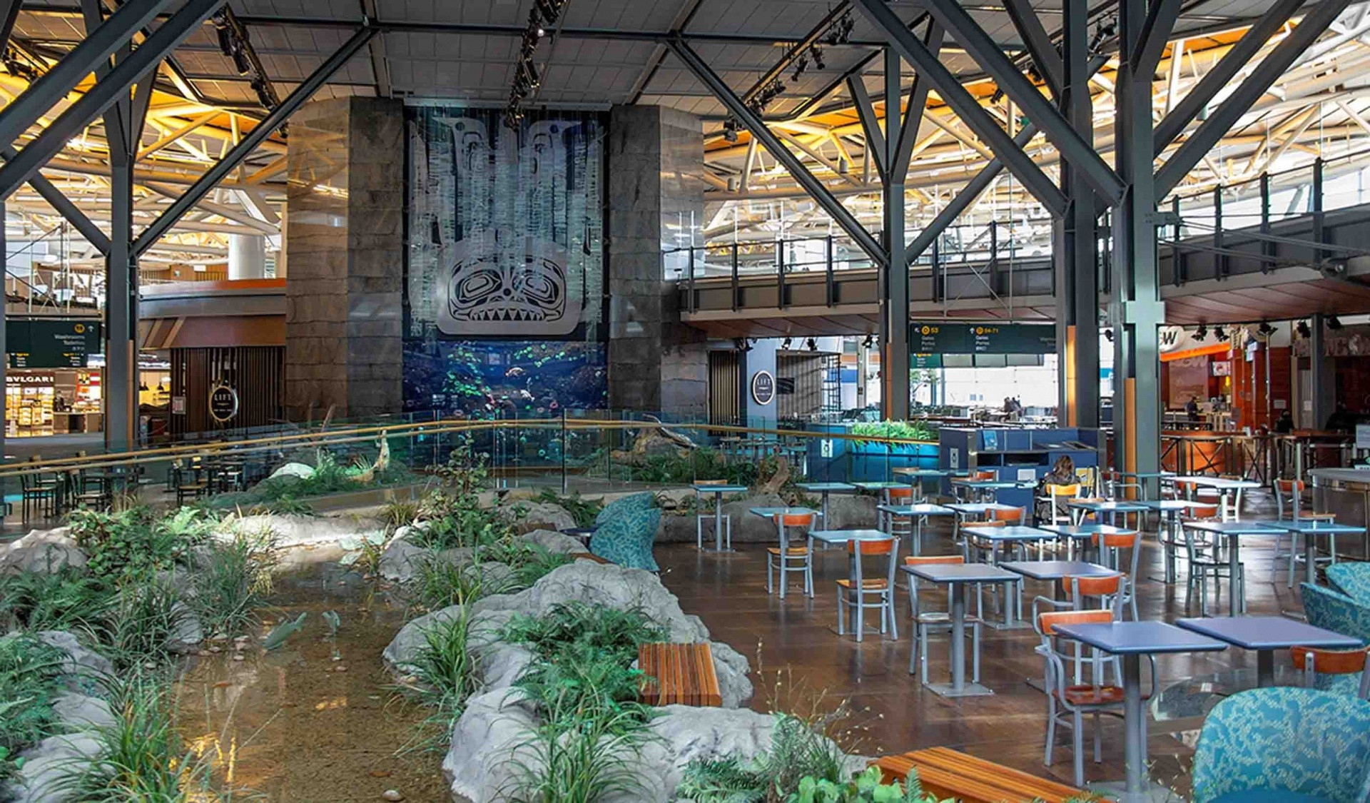 Không có nhiều sân bay bạn có thể ngắm nhìn các sinh vật đại dương trước khi bay lên bầu trời như vậy. Vancouver International tự hào có thủy cung sân bay lớn nhất thế giới với bể chứa 114.000 lít chứa đầy động thực vật biển.