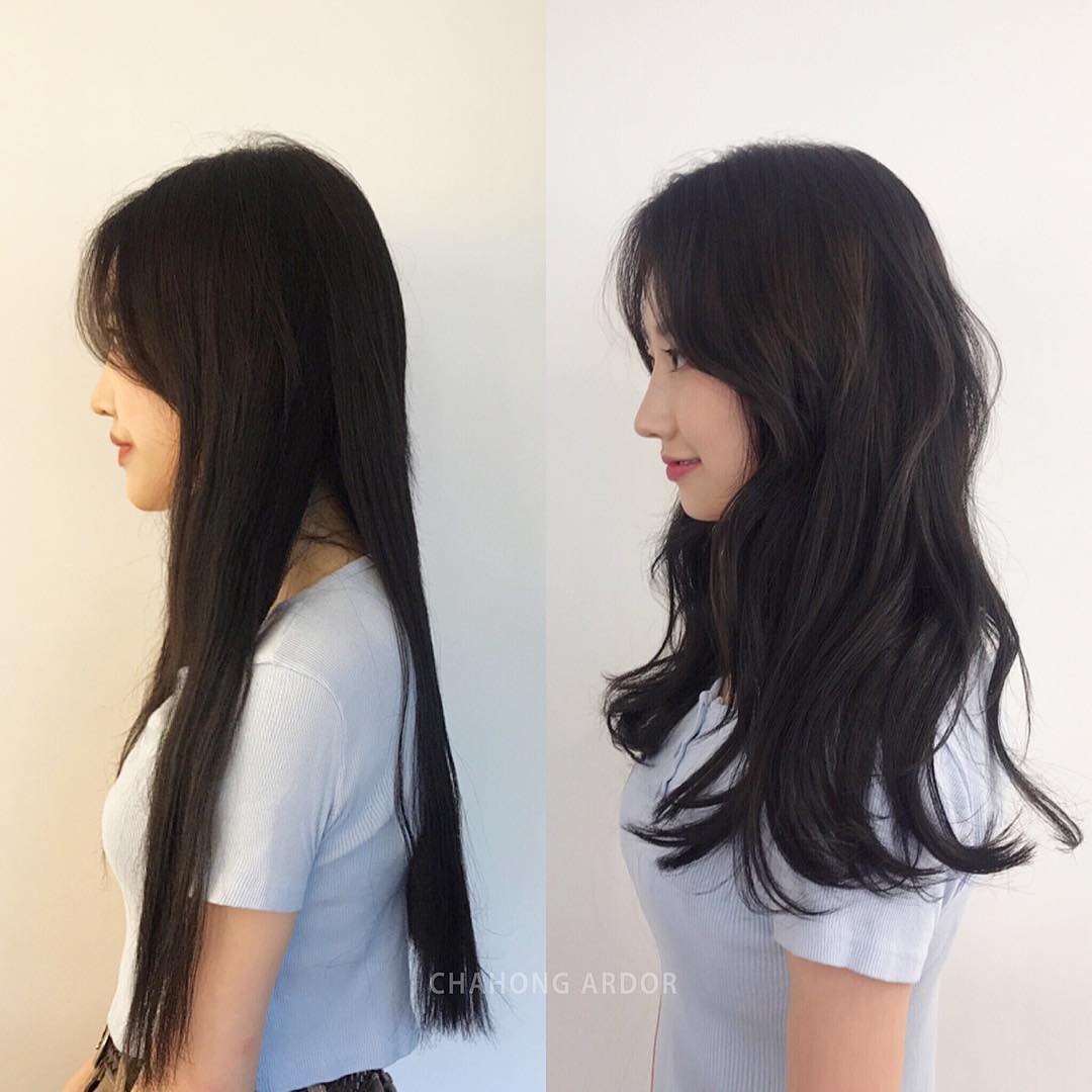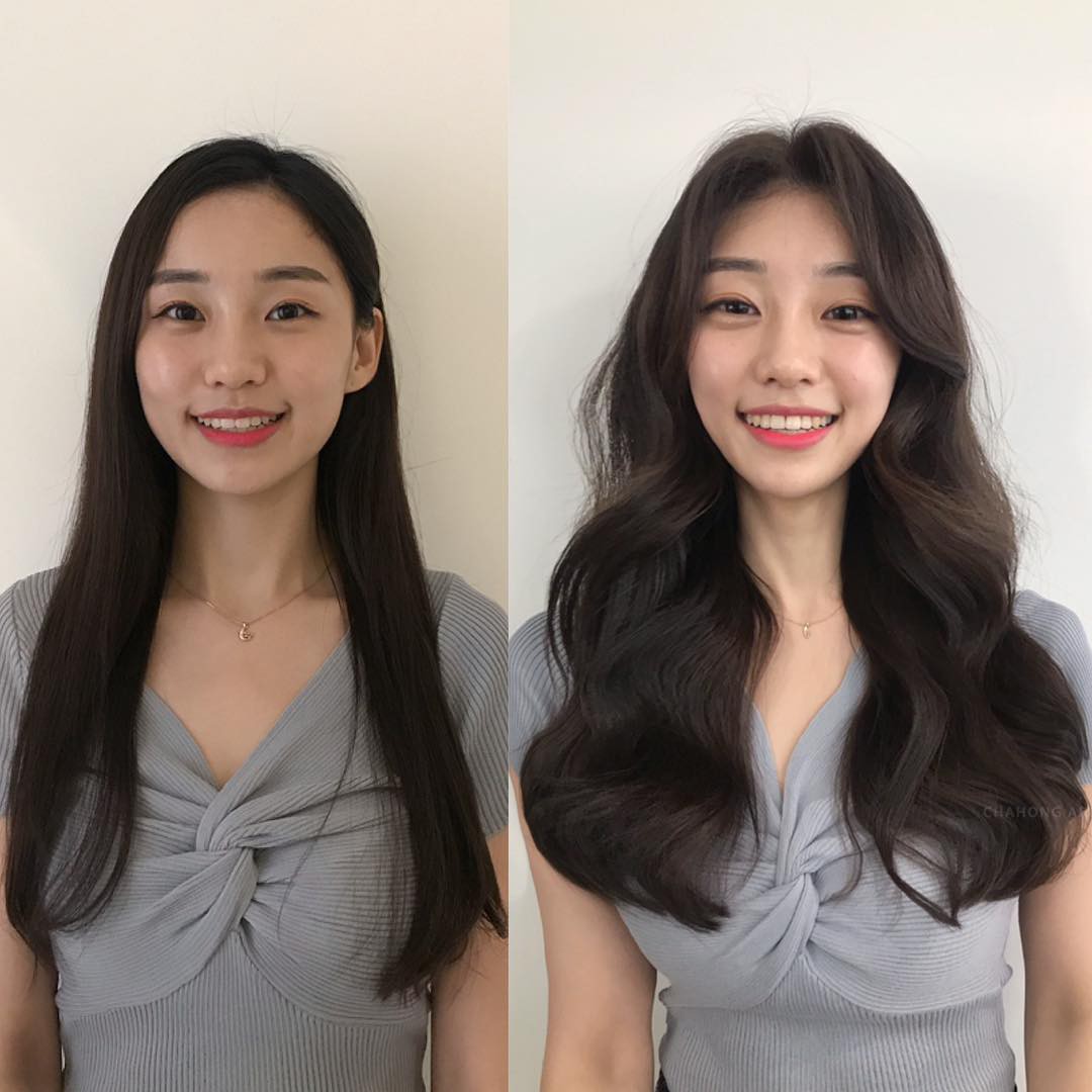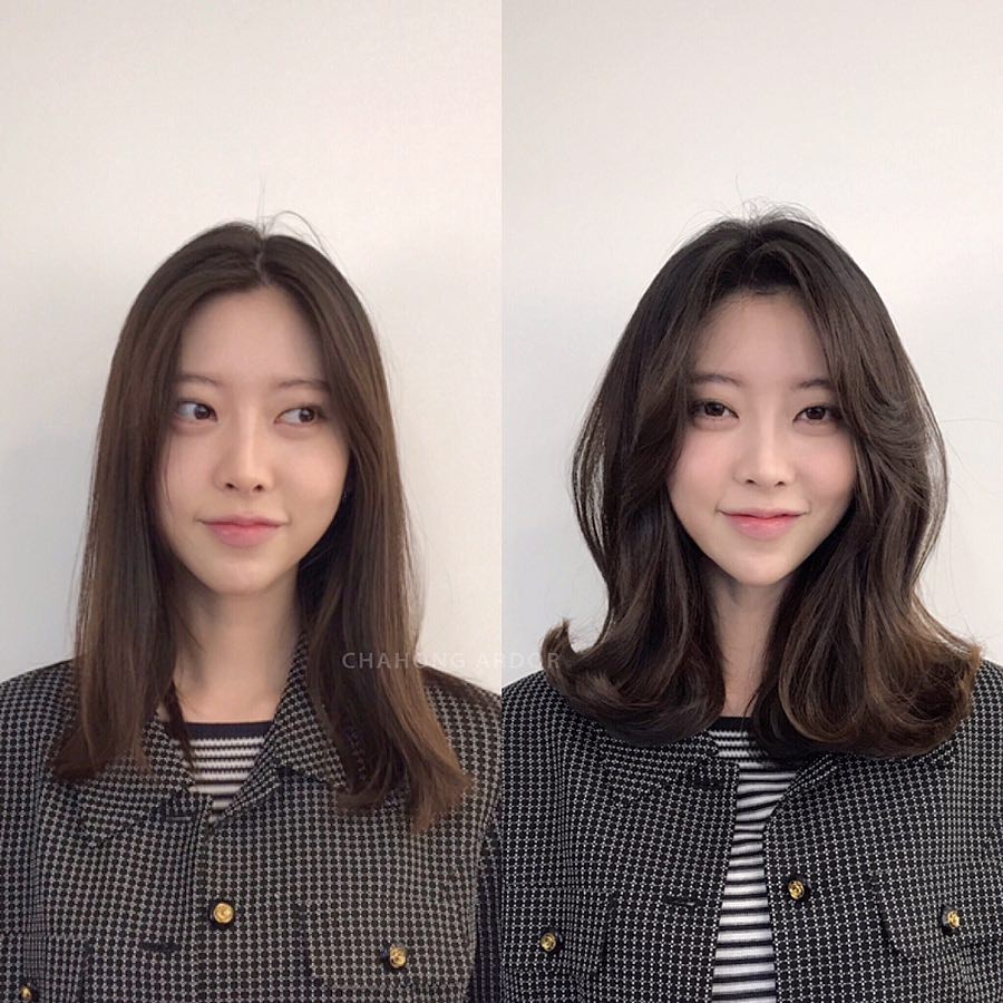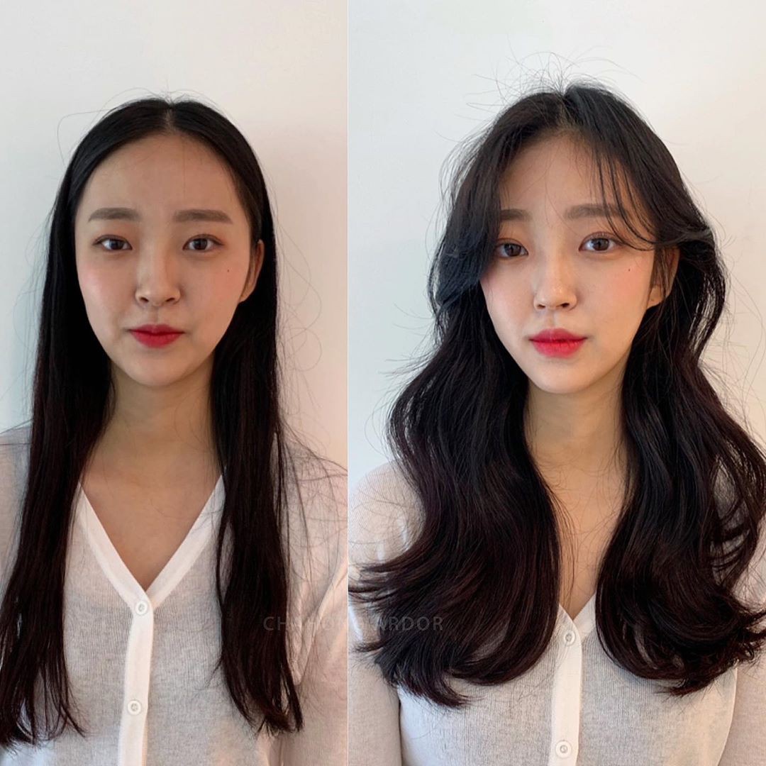 Tóc dài chạm vai thẳng đờ trông quả là chán đời, tỉa chút layer rồi uốn xoăn nhẹ ngay để cải thiện nhan sắc nào.