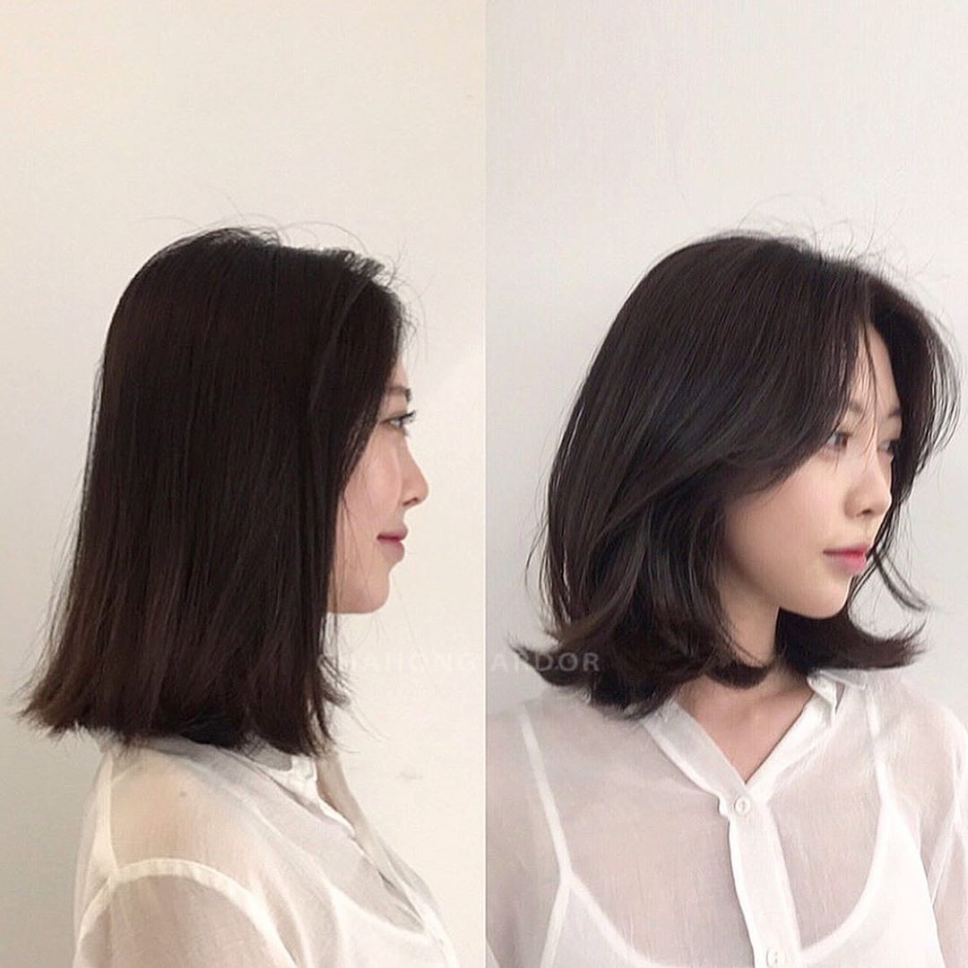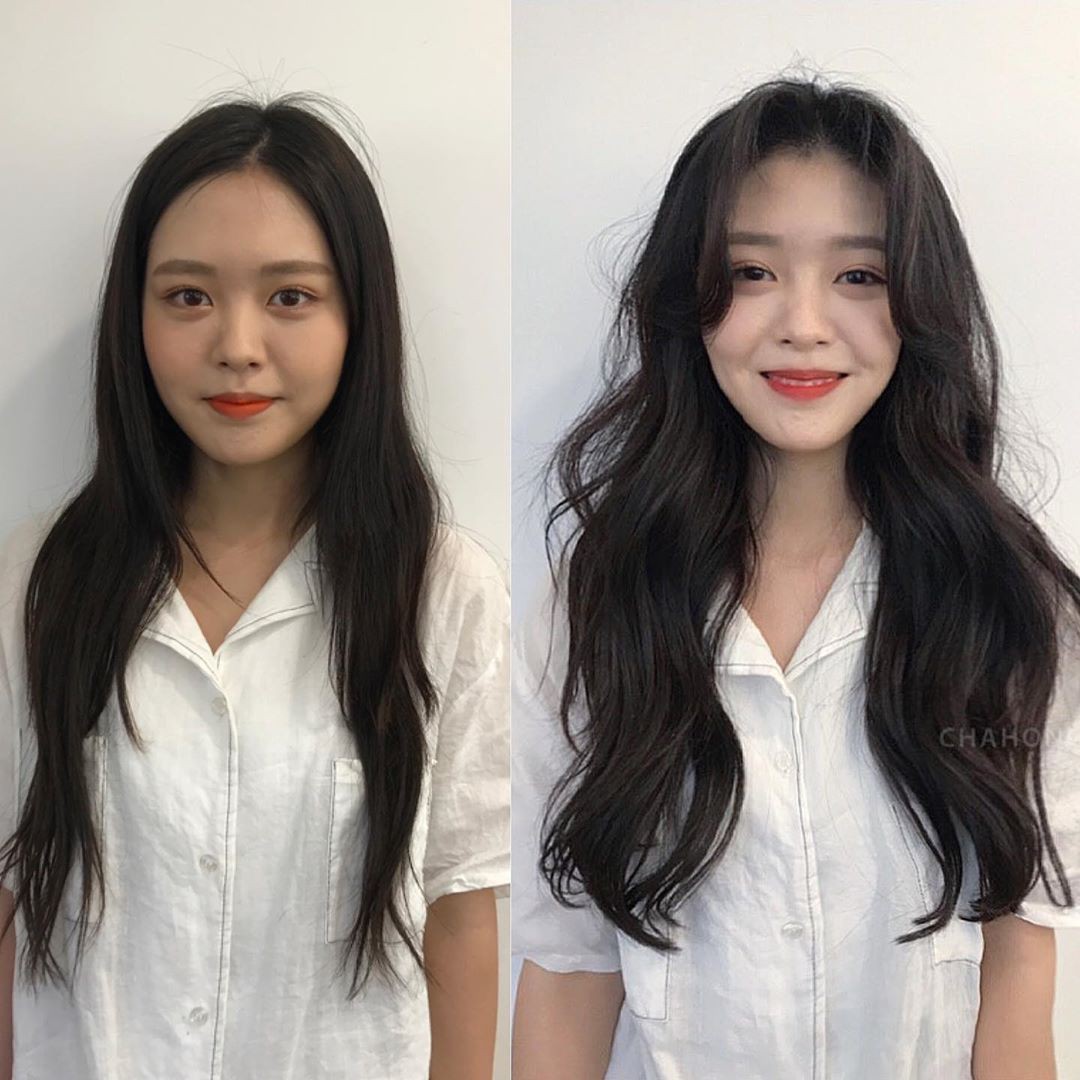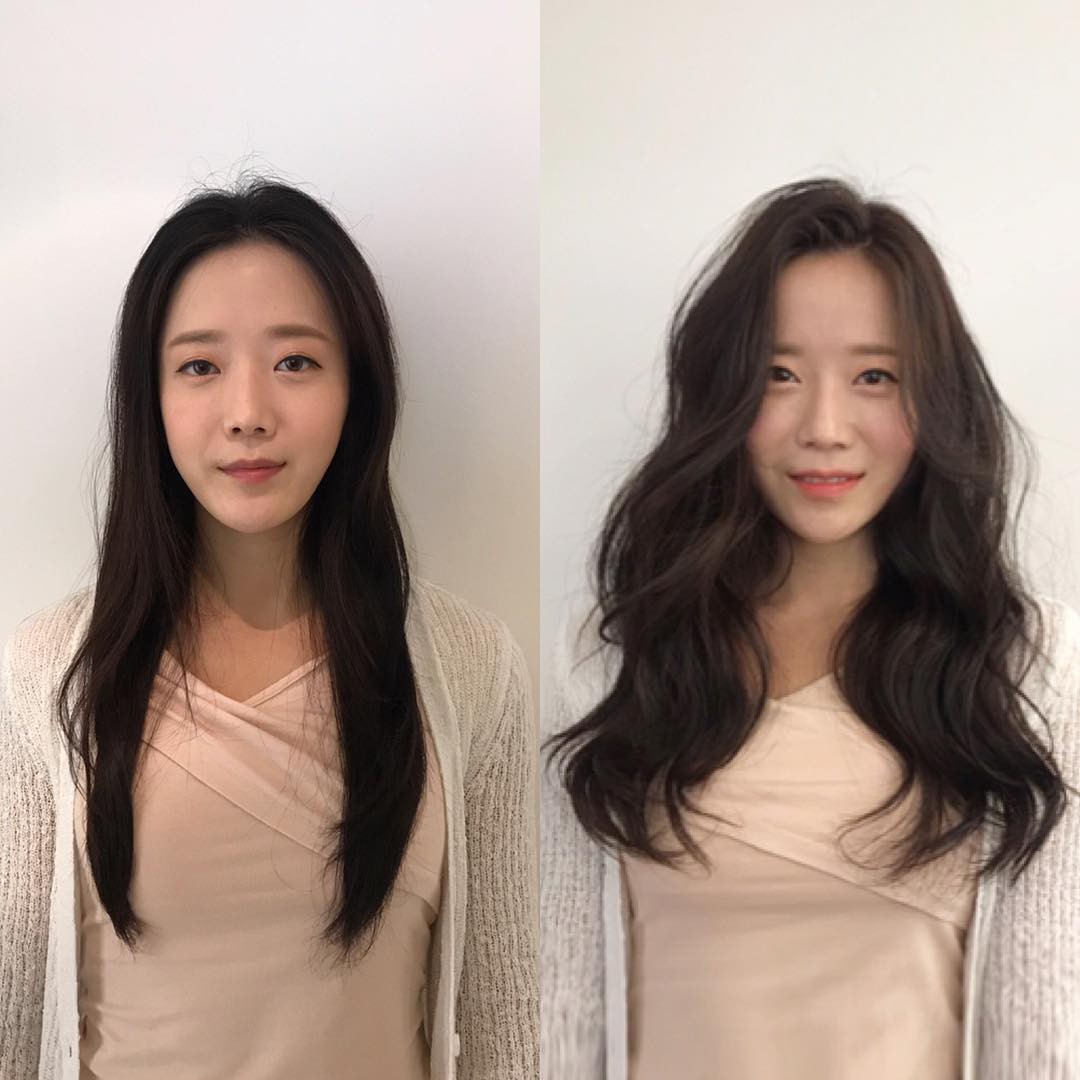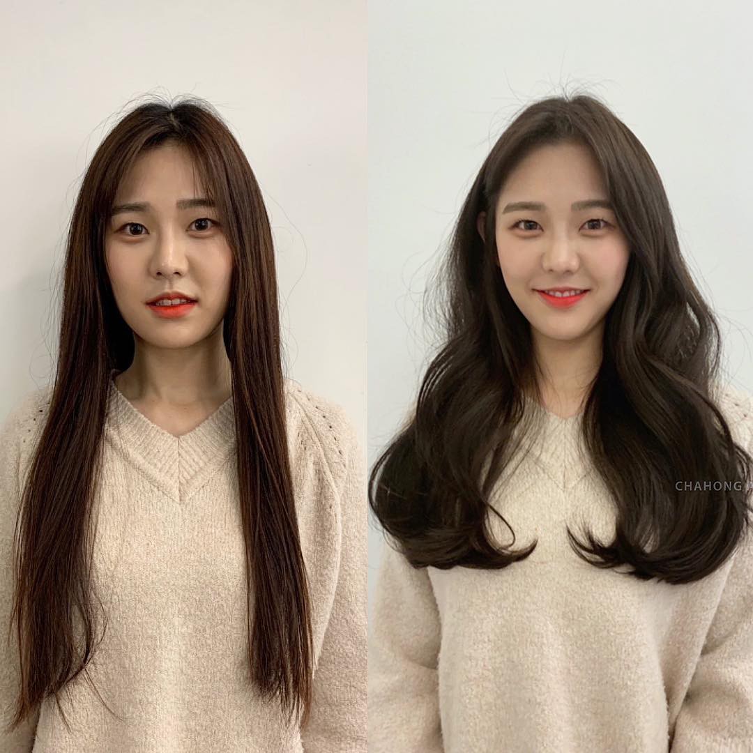 Tóc dài chạm vai thẳng đờ trông quả là chán đời, tỉa chút layer rồi uốn xoăn nhẹ ngay để cải thiện nhan sắc nào.