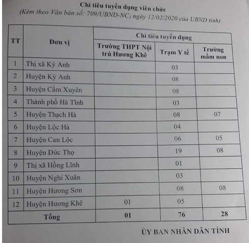 Chủ tịch UBND tỉnh Hà Tĩnh Trần Tiến Hưng vừa ký văn bản số 709/UBND-NC1 về việc tuyển dụng 123 viên chức.