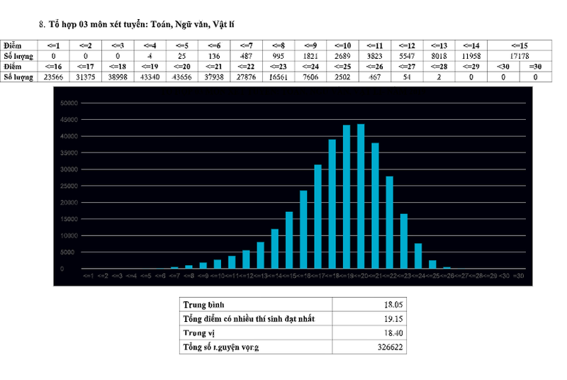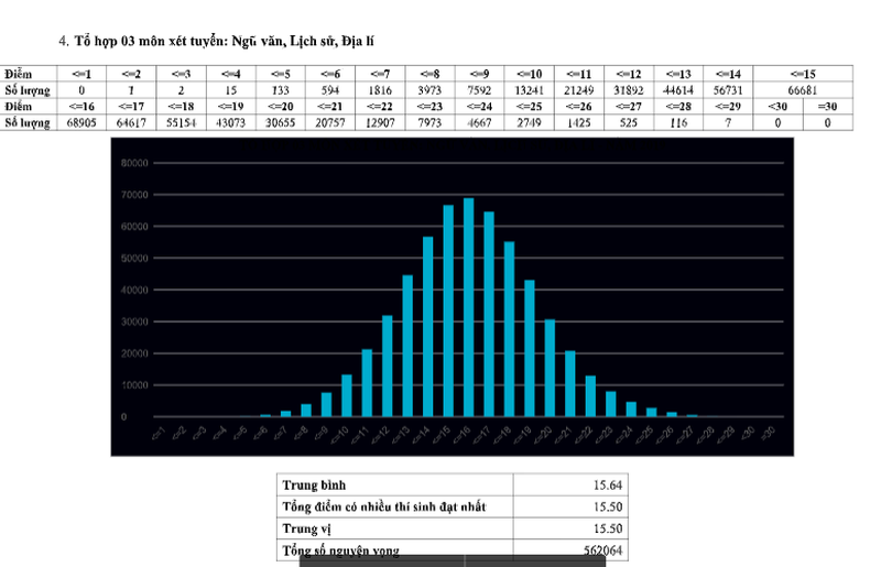 Phổ điểm tổ hợp 3 môn xét tuyển ĐH Văn, Sử, Địa |