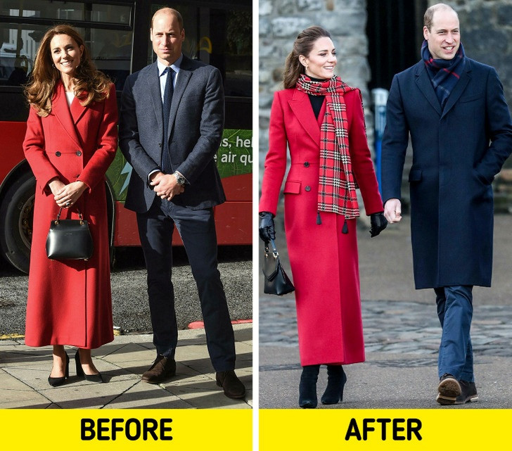 Công nương Kate Middleton thường mặc lại những đồ đã mặc. Và để làm cho vẻ ngoài tươi mới, Kate kết hợp những món đồ với phụ kiện hợp thời trang. Ví dụ, chiếc áo khoác Alexander McQueen màu đỏ này có sức sống mới nhờ chiếc khăn kẻ caro thời thượng.