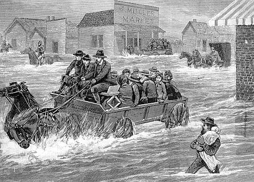 Lũ lụt bao phủ một khu vực rộng khoảng 50.000 dặm vuông (129.499 km2) và phá hủy các trang trại, nhà cửa, trung tâm thương mại cũng như các tài sản khác mà giá trị chính xác vẫn chưa được biết cho đến nay.