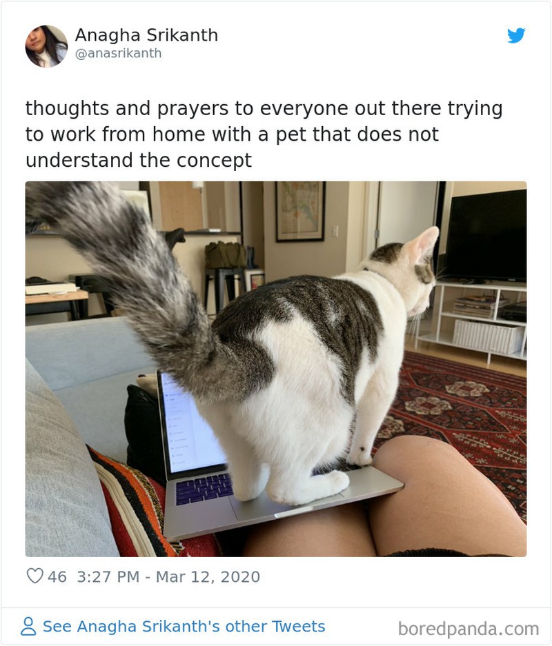 Nhiều công ty trên toàn thế giới đã quyết định cho nhân viên làm việc tại nhà trong bối cảnh dịch bệnh lan rộng. Tuy nhiên, khi làm việc ở nhà, bạn phải đối mặt với nhiều vấn đề, trong đó sự quấy phá từ thú cưng là một ví dụ.