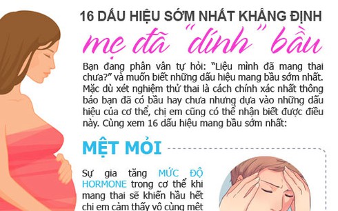Dấu hiệu mang thai sớm nhất là gì để chăm sóc sức khỏe thai kỳ một cách tốt nhất là điều nhiều người quan tâm. Với 16 dấu hiệu mang thai dưới đây, có thể chắc chắn bạn đã mang trong mình một sinh linh bé nhỏ rồi đấy!