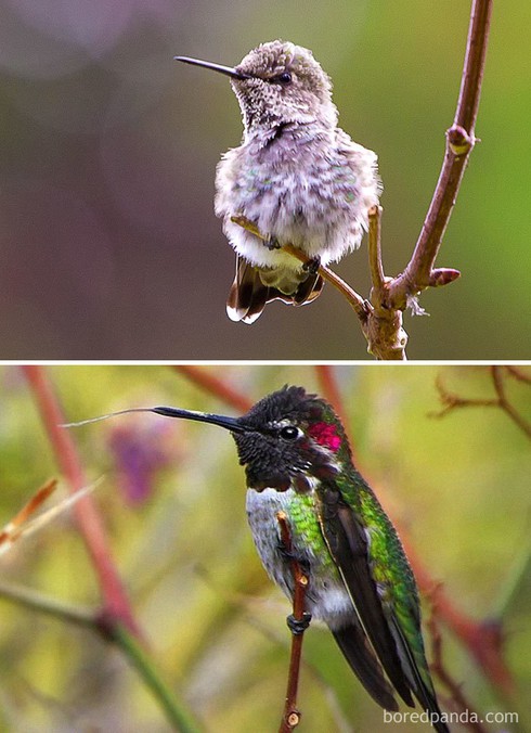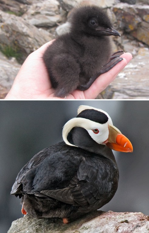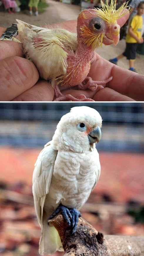 Chim non khi mới sinh ra thường có lông tơ xù hoặc không có lông khiến chúng trông rất kỳ dị. Phải đến lúc trưởng chúng mới "trổ mã" và khoe ra những "bộ váy áo" tuyệt đẹp. Chính vì thế mà không ít người đã có những khoảnh khắc "mắt chữ o miệng chữ a" khi chứng kiến sự khác biệt một trời một vực của nhiều loài, đặc biệt là những giống chim dưới đây.