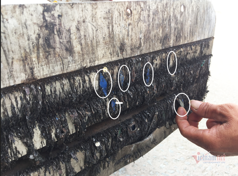 Anh Cảnh tháo khung sắt trên chiếc xe hút đinh ra. Anh ngoắc chúng tôi lại gần rồi lật ngược khung lên. Bên dưới gần sát đất, một dải nam châm dài 1,2m dính đầy đinh. Chúng tôi trố mắt. Anh nói: 'Thế này chưa đáng bao nhiêu đâu. Lúc trước, chỉ cần dạo chừng 1km đã có hơn 1kg đinh rồi'.