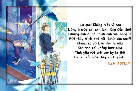 Trong khi đó, Nhớ của Puskin lại là một câu chuyện về những mâu thuẫn giằng xé của một chàng trai khi trót tương tư một cô gái trong tâm trí mà không hề hay biết. Lời thơ nhẹ nhàng, trẻ trung và dí dỏm của Nhớ đã khắc họa rõ nét những rung động ban đầu mà bất cứ bạn trẻ nào ở thời đại này cũng đã, đang và sẽ trải qua khi yêu.