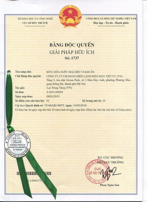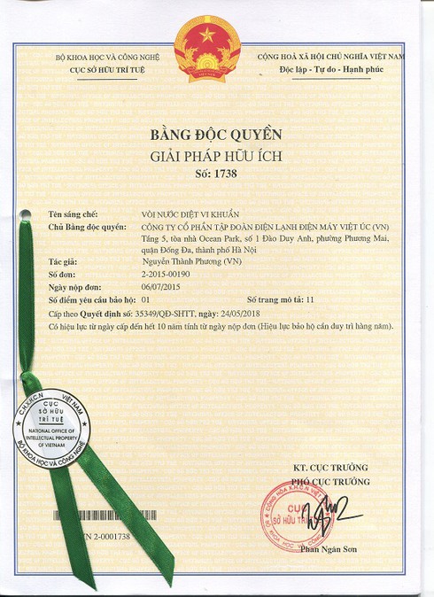 Vào đúng kỷ niệm sinh nhật 15 năm, với những công nghệ mới nhất trong nghiên cứu của mình, Tập đoàn Kangaroo chính thức đã nhận được chứng nhận 2 bằng độc quyền giải pháp hữu ích về vòi nước diệt vi khuẩn và bồn chứa nước mái diệt vi khuẩn, góp thêm vào số lượng các bằng độc quyền giải pháp hữu ích và sáng chế, kiểu dáng mà Kangaroo đã được cấp trước đó. Kangaroo cũng là trường hợp hiếm trong số các doanh nghiệp được nhận cùng lúc 2 bằng độc quyền.