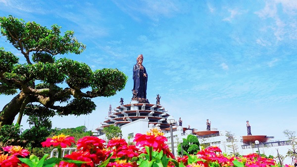 Tại đây, ấn tượng nhất là bức tượng Phật Quan Thế Âm lớn bậc nhất miền Nam Bộ đứng trên con rồng và đài sen đặt giữa hồ nước trang nghiêm. Bên cạnh đó, du khách còn được chiêm bái tượng đức Phật Thích Ca Mâu Ni dưới những tán cây bồ đề sum suê xanh mướt ngay trước khuôn viên chùa; tượng Quan Thế Âm và nhiều bảo tháp.