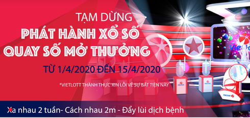 Thực hiện quy định về phòng chống dịch Covid-19, Vietlott cũng thực hiện việc tạm dừng phát hành và tổ chức quay số mở thưởng các sản phẩm xổ số tự chọn điện toán (Power 6/55, Mega 6/45, Max 4D, Max 3D, Max 3D+ và Kenzo) trong vòng 15 ngày; từ 0h ngày 1/4 đến 24h ngày 15/4/2020.