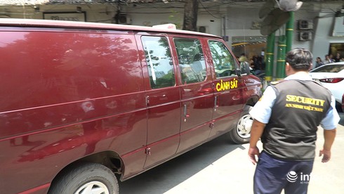 Xe đưa hai nữ nhân viên Eximbank Chi nhánh TP.HCM về trụ sở cơ quan điều tra. |