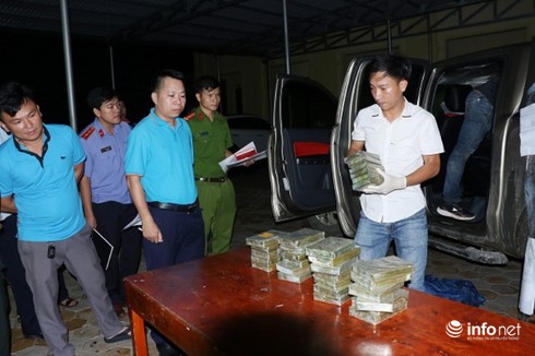 Khám xét trên xe ô tô BKS 29C-341.81, lực lượng chức năng thu giữ 30 bánh heroin, 6000 viên ma túy tổng hợp được đối tượng cất dấu ở ghế ngồi phía sau xe. Bước đầu đối tượng khai nhận số ma túy trên được một đối tượng thuê vận chuyển từ Trung tâm Hương Sơn đi TP Vinh (Nghệ An) với giá 5000USD.