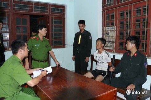 Lãnh đạo Công an tỉnh Hà Tĩnh đang lấy lời khai Giàng Seo Chỉnh(Ảnh: Công an Hà Tĩnh) |