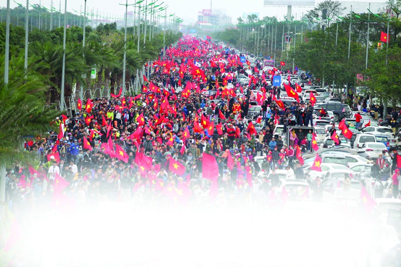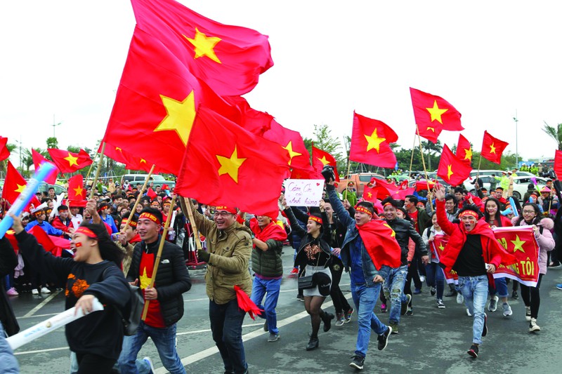 Cổ động viên cổ vũ đội tuyển Việt Nam mừng chiến thắng |