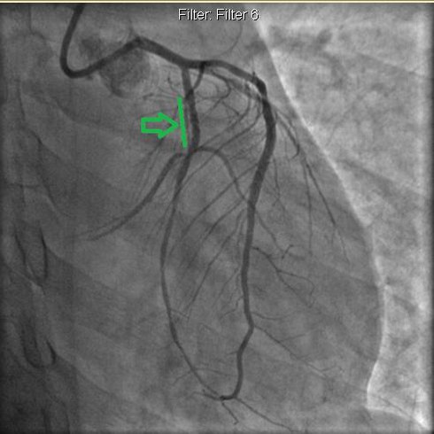 Các bác sĩ nghi ngờ viêm cơ tim nhưng trên nền men tim tăng nhanh. Các yếu tố cũng như kết quả siêu âm đều hướng về nhồi máu cơ tim. Ngay lập tức bệnh nhân được chụp mạch vành. Kết quả chụp mạch vành là nhánh mũ tắc hoàn toàn.
