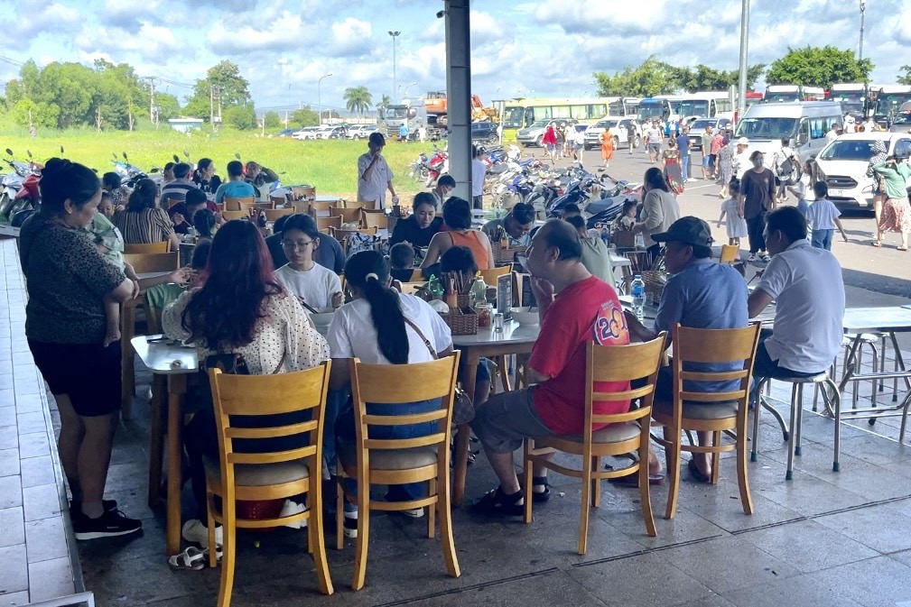 “Mỗi lần xe tôi ghé đây cũng mất khoảng 20 - 30 phút chủ yếu cho hành khách đi vệ sinh. Do lượng người - xe lúc nào cũng rất đông nên tôi phải tìm chỗ đậu xe thuận tiện cho khách dễ xác định vị trí”, anh Nam thông tin.