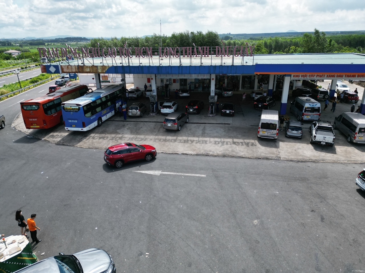Tại đây có hàng trăm ô tô liên tục ra vào từ xe du lịch cá nhân, xe khách từ 16 - 52 chỗ, thậm chí cả xe tải, xe container... cũng ghé vào đây để cho khách đi vệ sinh, tài xế kiểm tra kỹ thuật phương tiện trước khi tiếp tục hành trình dài trên cao tốc mà không có trạm dừng nghỉ.
