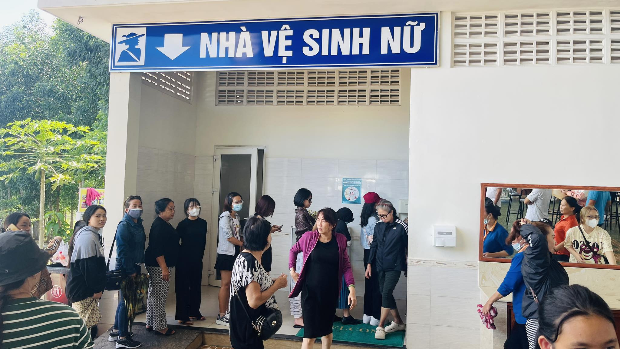 Đi vệ sinh phải xếp hàng 30 phút