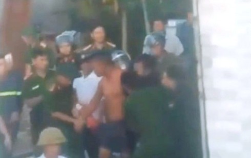 Lực lượng chức năng giải cứu thành công Nguyễn Duy D. (Ảnh cắt từ clip) |