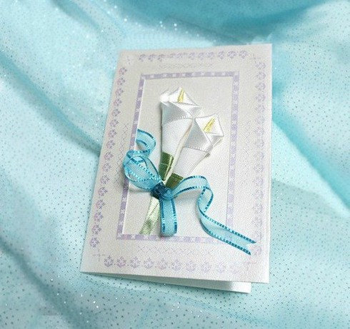 Vẻ đẹp trang nhã của thiệp hoa ruy băng đặc biệt phù hợp với ngày lễ 20/11 sắp tới. Cách làm thiệp hoa ruy băng này cũng rất đơn giản nên bạn chỉ cần khéo tay một chút là xong.