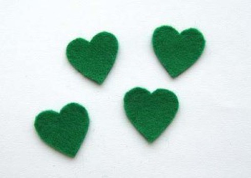 Sử dụng các mẫu giấy sau để cắt miếng vải nỉ bốn hình trái tim màu xanh lá cây.