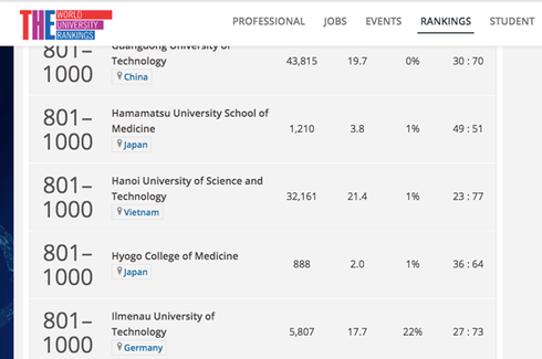 Cụ thể, Trường ĐH Bách Khoa Hà Nội và ĐH Quốc gia Hà Nội lọt vào top 801-1000; ĐHQG TP Hồ Chí Minh trong nhóm 1000+. Trong đó, Trường ĐH Bách khoa Hà Nội đứng đầu các trường ĐH Việt Nam trong bảng xếp hạng.