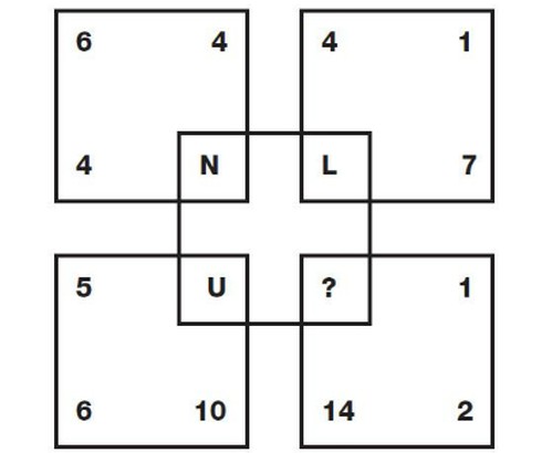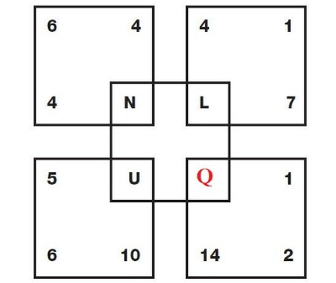 Tương tự, 1 + 2 + 14 = 17. Suy ra, chữ cái cần điền vào dấu hỏi chấm là chữ cái thứ 17 trong bảng chữ cái tiếng Anh. Đó là chữ Q.