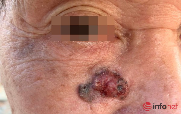 Đến khám tại Bệnh viện Da liễu Trung ương, ông Đỗ Văn Hữu (Thường Tín, Hà Nội) bất ngờ khi bác sĩ thông báo ông bị ung thư da. Theo ông Hữu, ông có một nốt ruồi ở gần đường sống mũi. Ba năm nay nốt ruồi này bắt đầu phát triển và từ màu đen sang thành màu nâu đỏ.