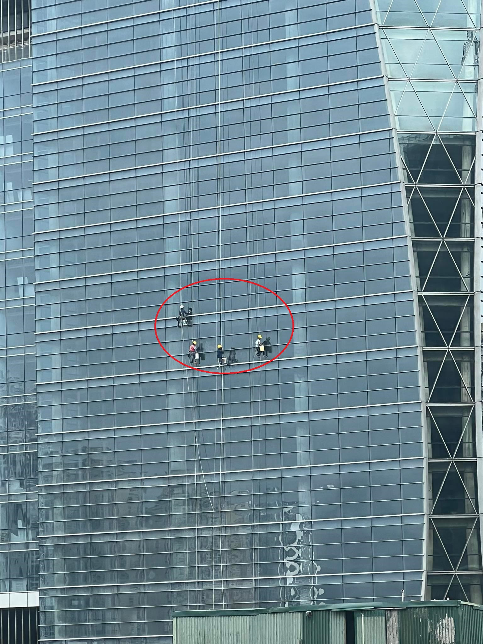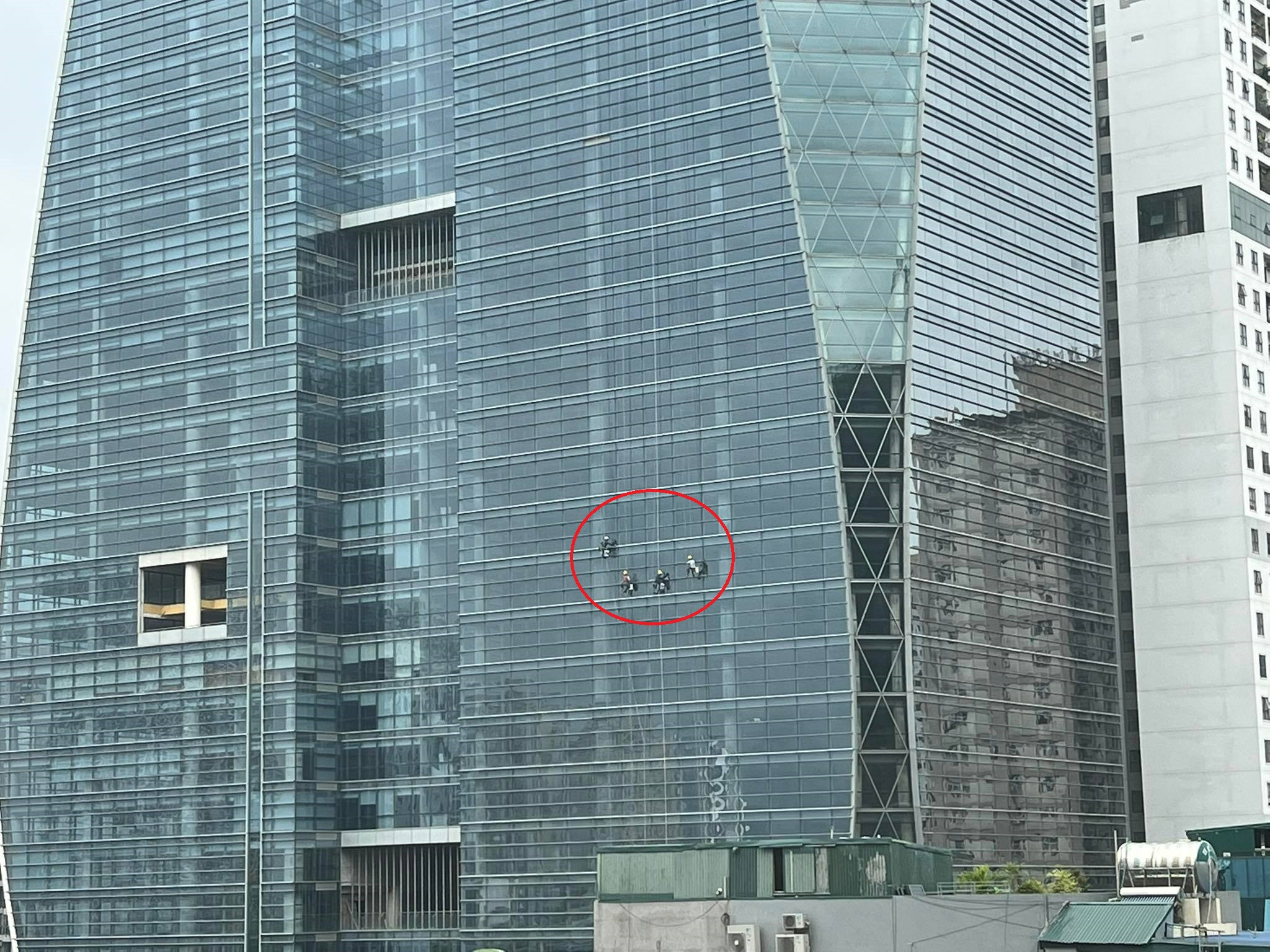 4 ‘người nhện’ đu đưa trên tòa nhà cao tầng ở Hà Nội khiến dân mạng 'rùng mình'