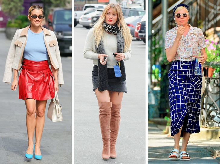 Chiều dài tối ưu nhất, phù hợp với mọi dáng người là chỉ trên đầu gối. Tùy thuộc vào kiểu dáng và đường cắt, hãy chọn phần trên phù hợp để chân không có vẻ ngắn hơn cơ thể và ngược lại. Và hãy nhớ rằng váy không được kết thúc ở điểm rộng nhất hoặc hẹp nhất, để không bị “nuốt” dáng.
