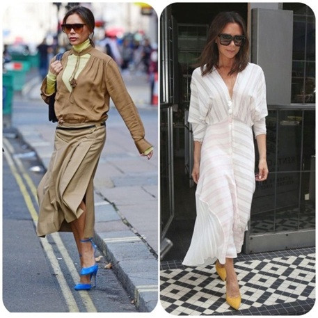 Mặc dù Victoria Beckham thường thích lựa chọn những sắc thái trung tính, cổ điển trong trang phục của mình, nhưng đôi khi người ta có thể thấy cô có thể sẵn sàng ăn diện theo những bộ quần áo có gam màu cực kỳ tươi sáng. Cô không ngại kết hợp hai gam màu sáng trong cùng một bộ đồ. Bạn có thể thấy nó rõ ràng trong bộ sưu tập dưới đây.