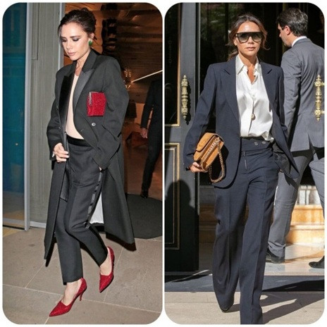 Ngay cả trong bộ vest nam, Victoria Beckham trông vẫn thực sự nữ tính. Có điều là cô khéo léo kết hợp giữa phong cách của nam và nữ. Nếu cô mặc một bộ vest nam, chắc chắn sẽ bổ sung thêm một chiếc áo lụa, giày cao gót và một chiếc túi đẹp.