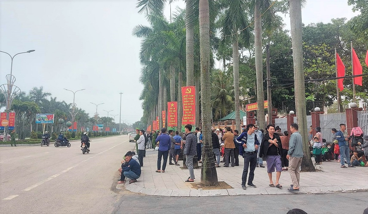 Từ sáng 30/3, rất đông các chủ xe điện 4 bánh tập trung trước cổng trụ sở UBND thị xã và Thị ủy Cửa Lò (Nghệ An) để phản đối về quyết định của UBND thị xã về quy chế quản lý hoạt động kinh doanh, vận chuyển khách du lịch của xe điện 4 bánh năm 2023.