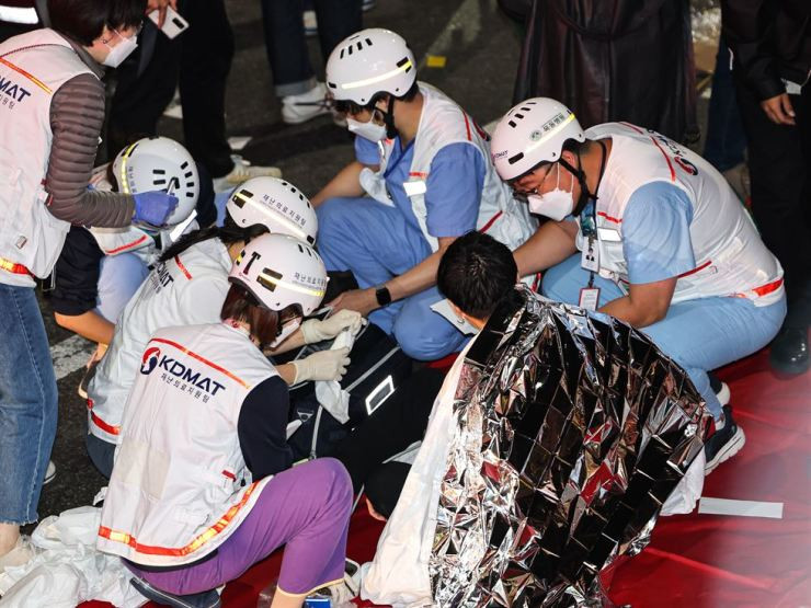 Trước đó, Korea Times trích nguồn tin từ giới chức Seoul, Hàn Quốc cho hay, ít nhất 50 người phải hô hấp nhân tạo sau khi bị ngừng tim do giẫm đạp tại khu phố nổi tiếng Itaewon khi đang tham gia lễ hội hóa trang Halloween tối 29/10.