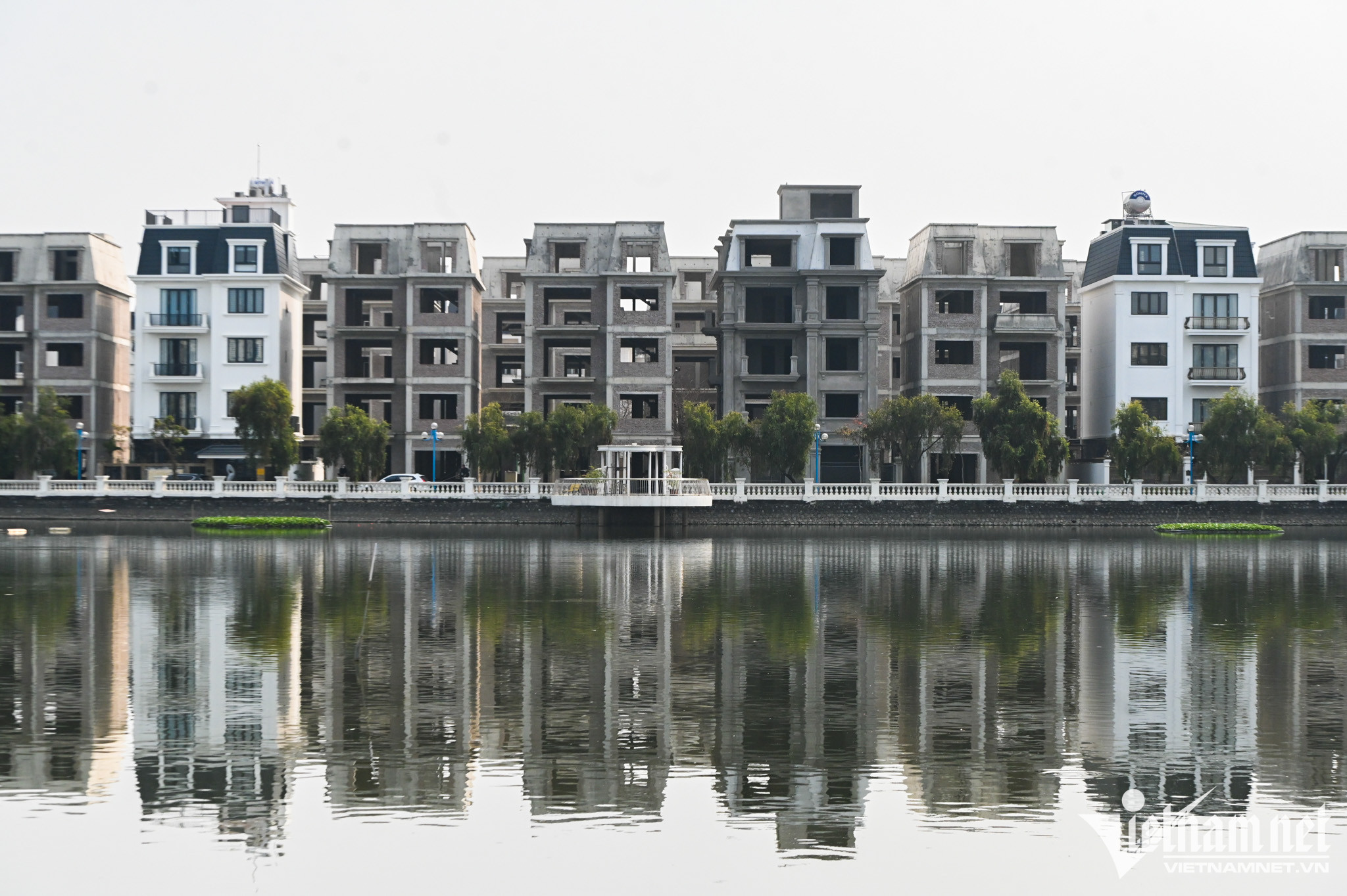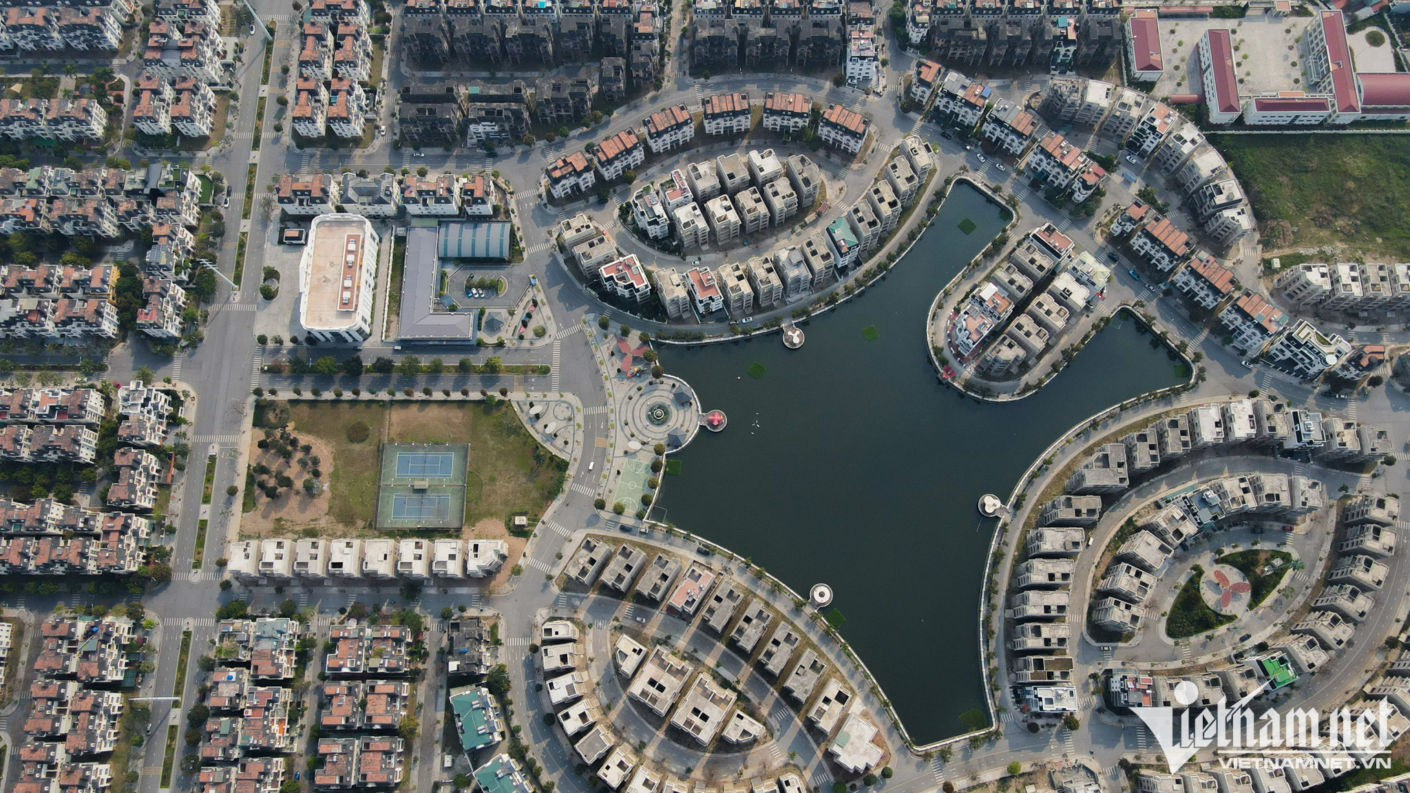 Điểm nổi bật là khu phía Tây có hồ nước lớn với đầy đủ chức năng hỗn hợp thể thao, giải trí, ăn uống, thương mại, hành chính…Các trục đường trong khu đô thị thưa vắng người qua lại với những dãy nhà đã hoàn thiện phần thô.Bên trong những căn biệt thự cao cấp để không, nhiều hạng mục còn dang dở.