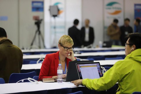 Trong hai ngày đầu đón tiếp các phóng viên tại trung tâm báo chí quốc tế của sự kiện, các sản phẩm sữa, sữa hạt, sữa chua và đồ uống của TH đã gây được ấn tượng tốt với bạn bè quốc tế với chất lượng hảo hạng, giữ trọn hương vị từ thiên nhiên.