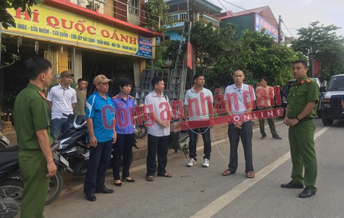 Bùi Văn Công diễn lại toàn bộ hành vi phạm tội tại hiện trường. |