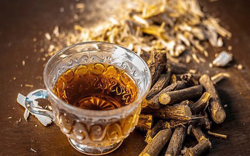 Trà cam thảo dịu cổ họng:Cam thảo có chứa thành phần kháng khuẩn, làm dịu cổ họng. Trà cam thảo có vị ngọt, nên các mẹ có thể yên tâm khi cho trẻ uống. Loại trà này sẽ giúp cơ thể trẻ ấm hơn và dịu họng hơn. |