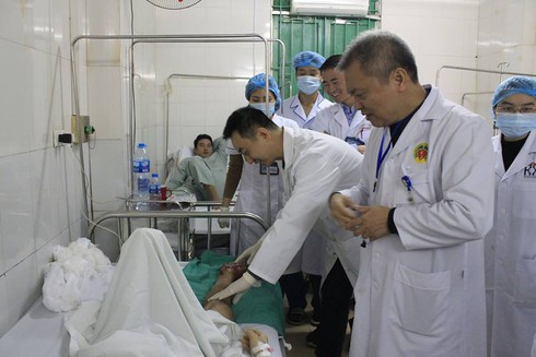 Nạn nhân được đưa vào cấp cứu tại Bệnh viện E, trong tình trạng sốc do đa chấn thương, nguy hiểm đe dọa đến tính mạng. Ngay lập tức các bác sĩ trực đêm đó đã tiến hành hồi sức cấp cứu, truyền máu (3 đơn vị khối hồng cầu, 2 đơn vị huyết tương tương đương với 1,5 lít máu). Tình trạng bệnh nhân được cải thiện, các bác sĩ nhanh chóng đẩy bệnh nhân này vào phòng mổ.