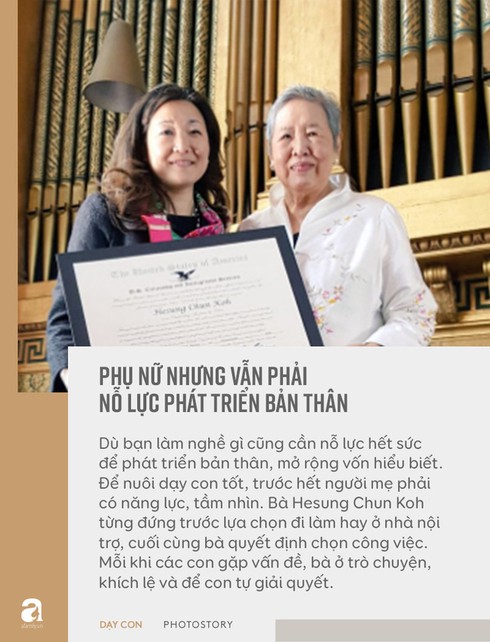 Bà mẹ Hàn Quốc Hesung Chun Koh khiến cả thế giới nể phục khi đã cùng chồng nuôi dạy 6 con thành công vượt bậc. Theo đó, tất cả đều là Tiến sĩ danh dự tại các trường đại học hàng đầu thế giới như Harvard, Yale, Viện Công nghệ Massachusetts.