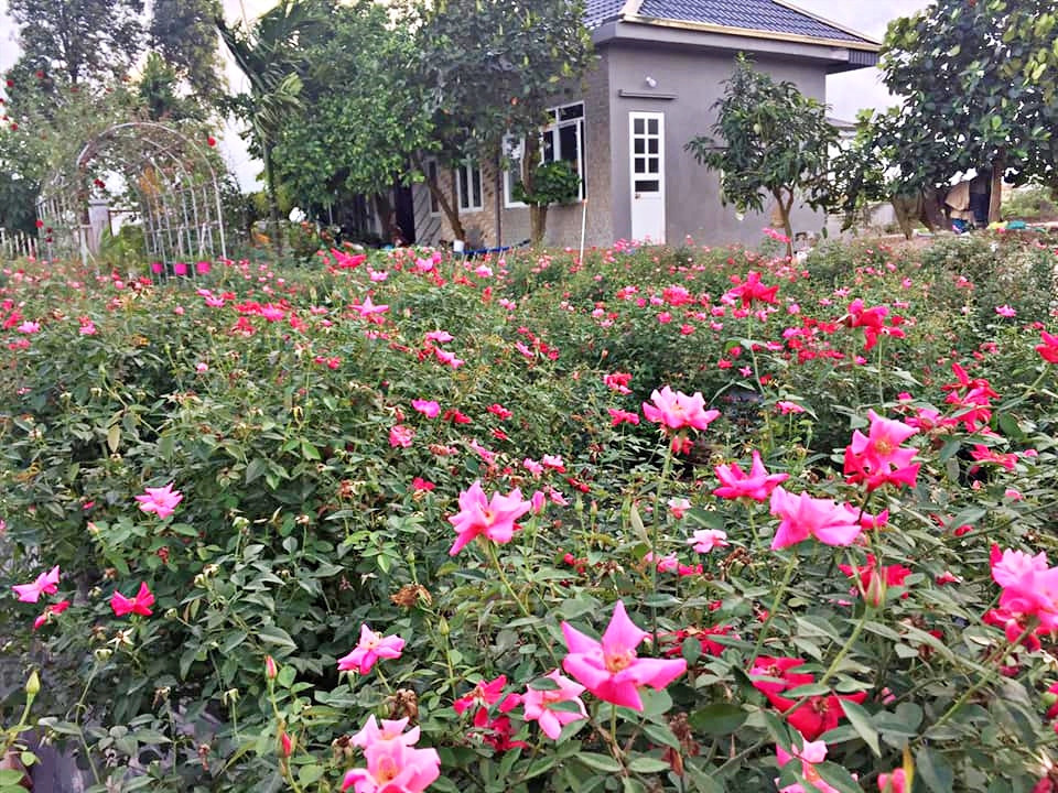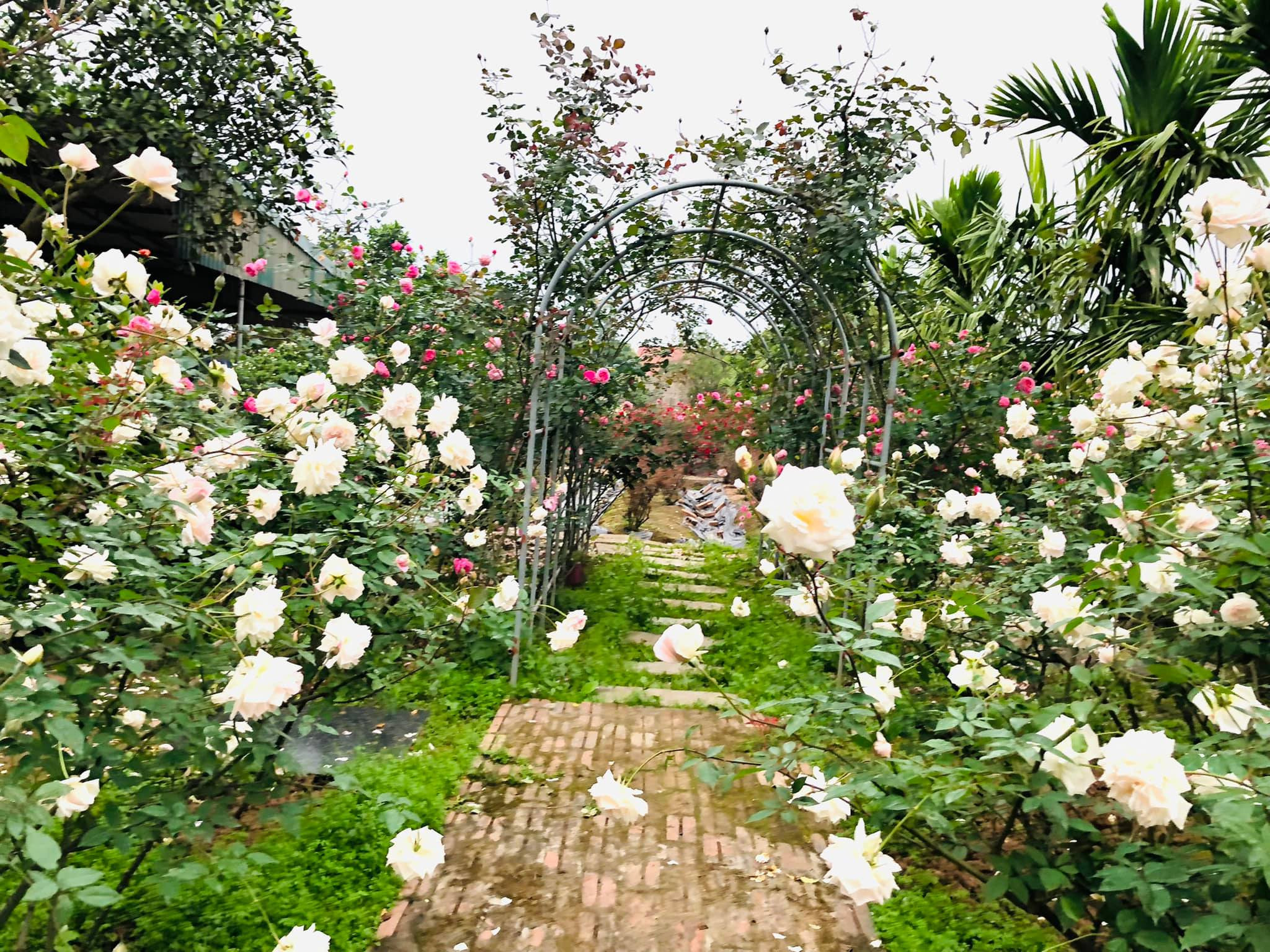 Sau ít năm chăm bón, anh hình thành vườn hoa hồng với gần 500 gốc. Hoa hồng trong vườn đa số là hồng cổ như hồng leo Hải Phòng, hồng cổ SaPa, hồng đào, bạch xếp, quế son, quế ta cánh đơn, quế ta cánh kép…